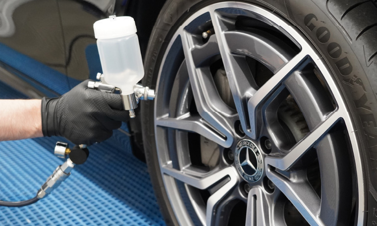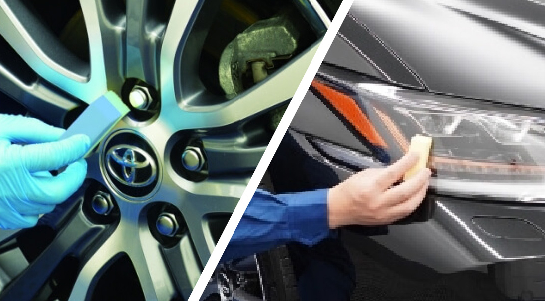 撥水性のトップコートを採用することで汚れの付着を抑制しながら、濃色カラーのホイールなどにはツヤ感を向上させ、お車をキレイに演出します。